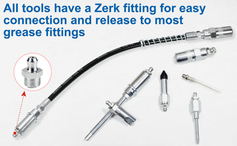 - Wide Application — Grease Gun Accessory Set compatible with most grease gun couplers and guns. Suitable for daily use and outdoor activities on most automotive, truck, farm equipment, agriculture, railers, industrial and marine Use. Ideal for garages or automotive workshops.